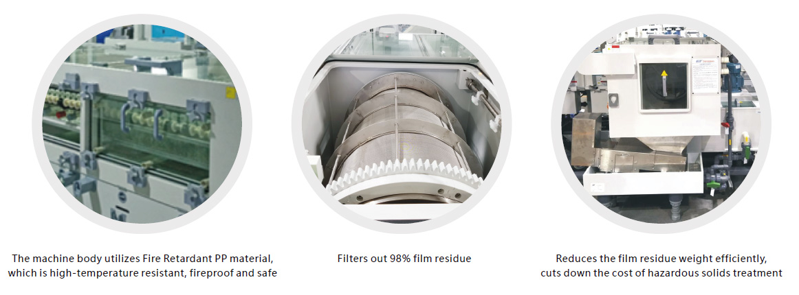 After the PCB/FPC Film Stripping, the water content of the film residue is high.Applying UCE filter design in the Film Stripping can effectively reduce the cost of film residue treatment.