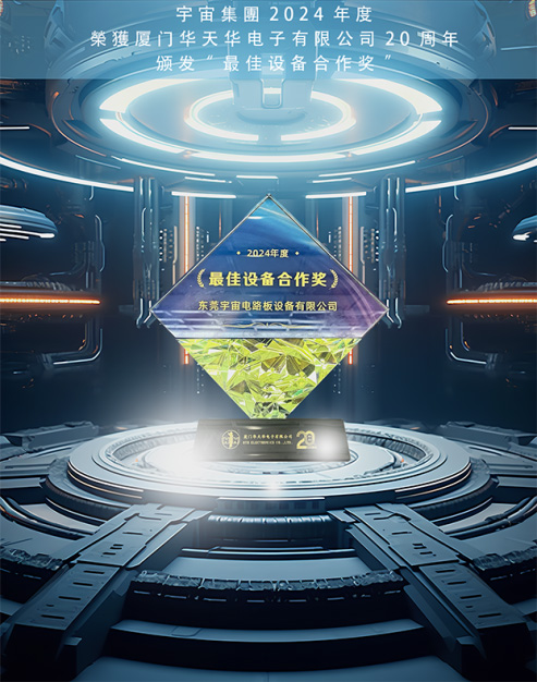 2024年12月30日,宇宙集团荣获华厦门天华电子有限公司20周年颁发“最佳设备合作奖”